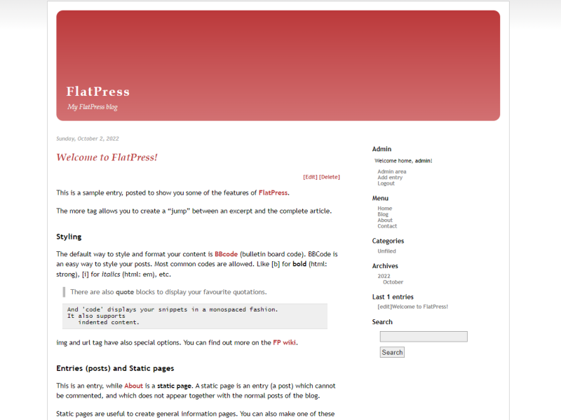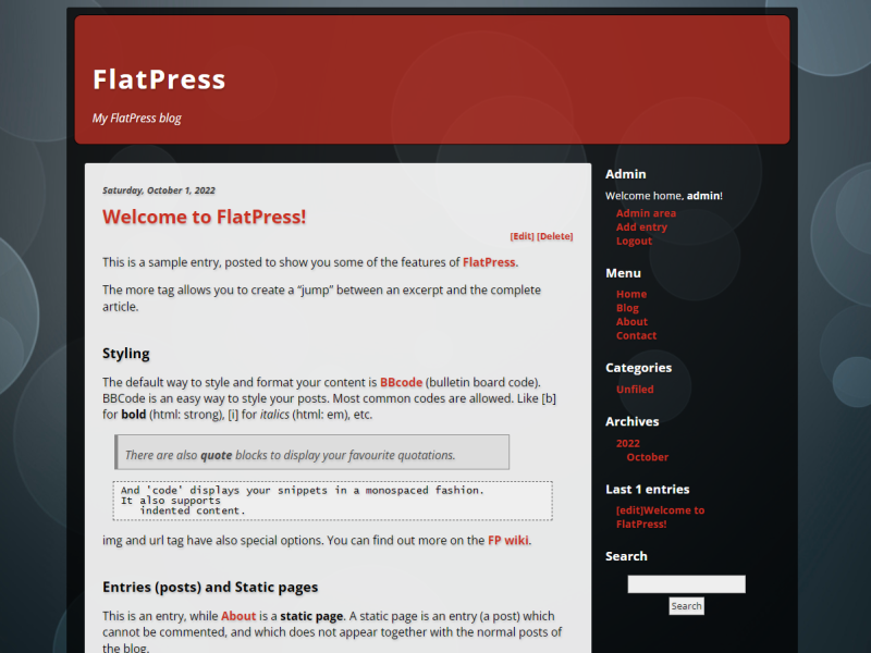Es folgt noch etwas mehr Beispiel-Inhalt, der dir noch mehr FlatPress-Funktionen zeigt :)